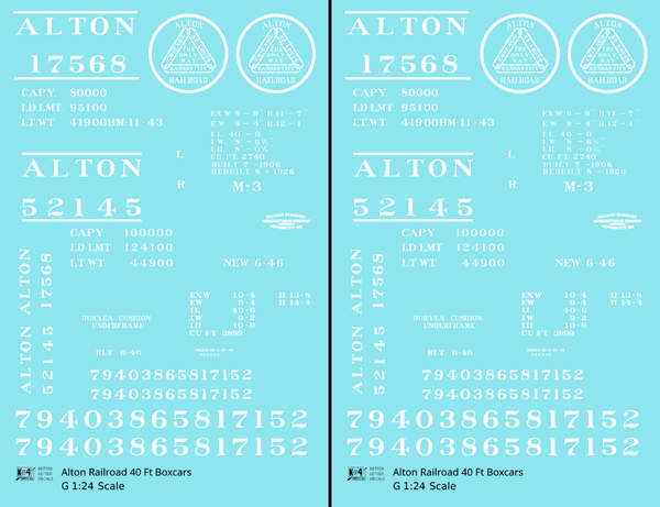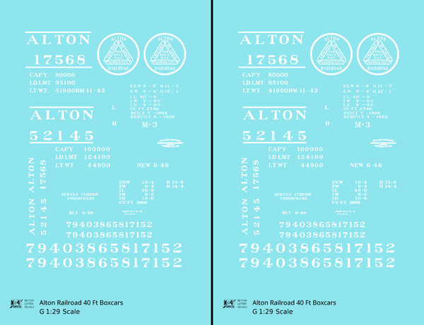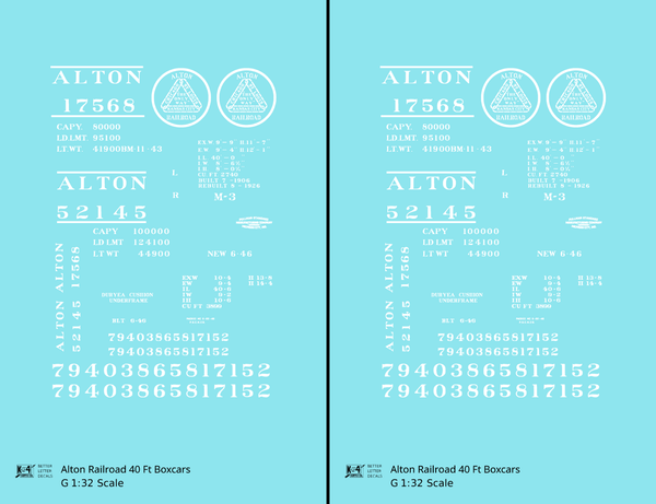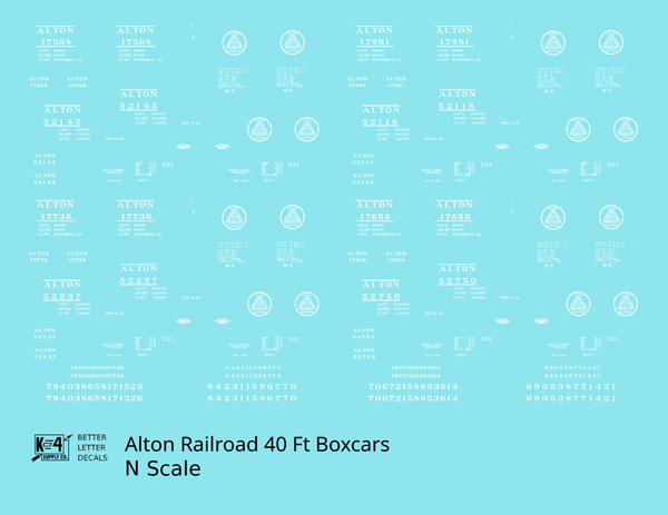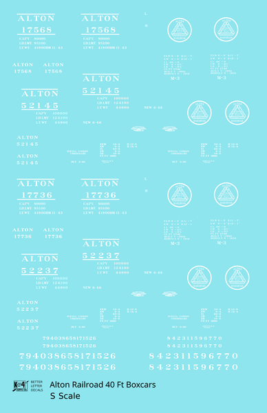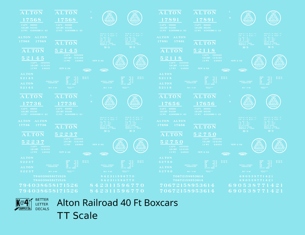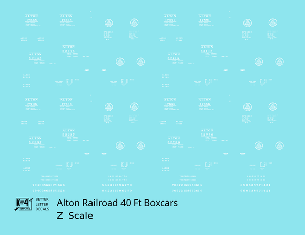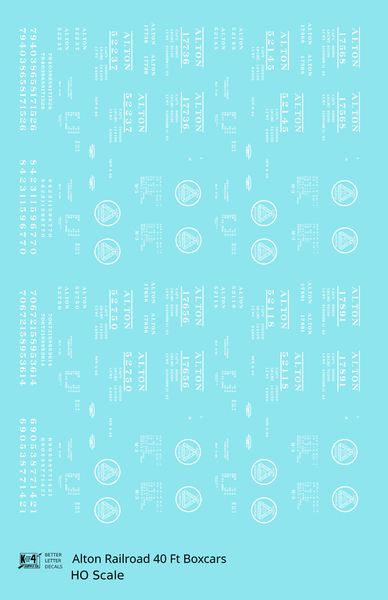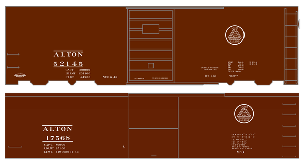 > Alton Railroad 40 Ft Boxcar White - Decal - Choose Scale