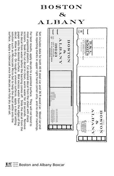 > Boston and Albany 36 Or 40 Ft Boxcar White - Decal - Choose Scale