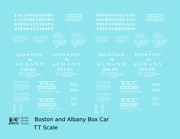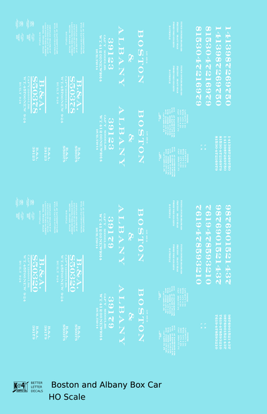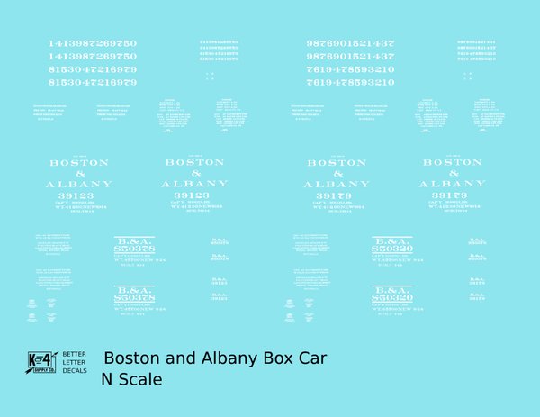 Boston and Albany 36 Or 40 Ft Boxcar White - Decal - Choose Scale