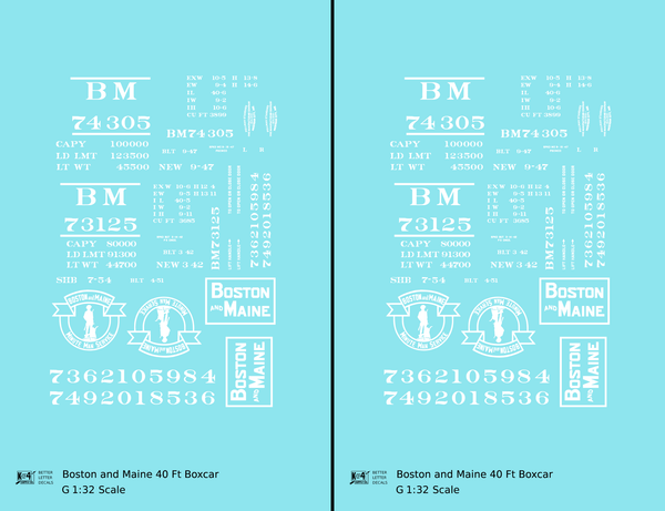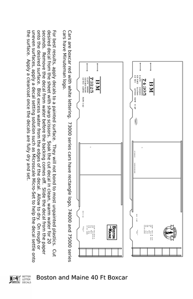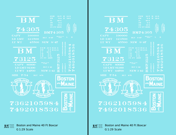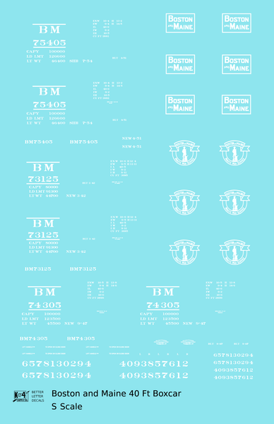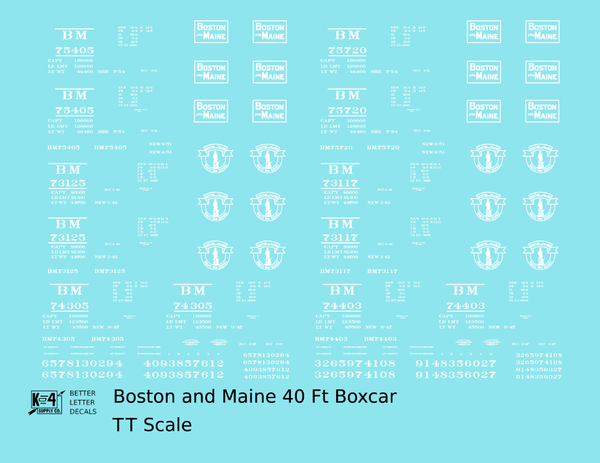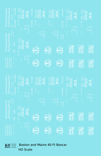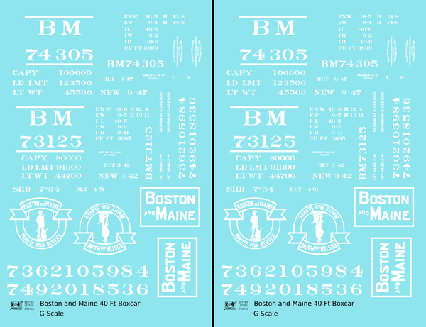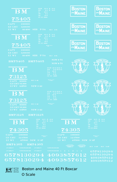 > Boston and Maine 40 Ft Boxcar White - Decal - Choose Scale