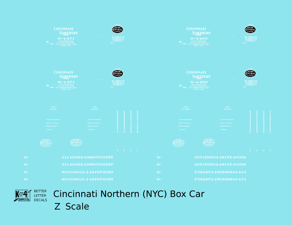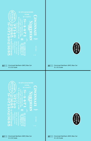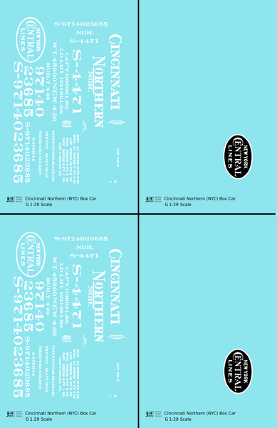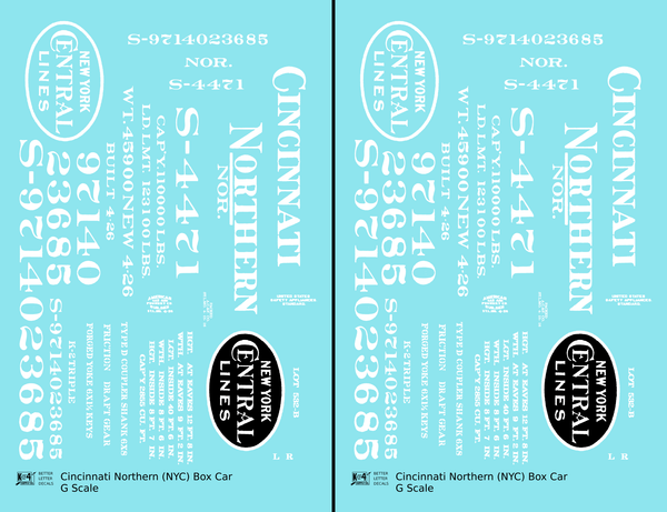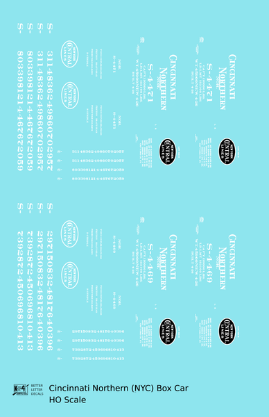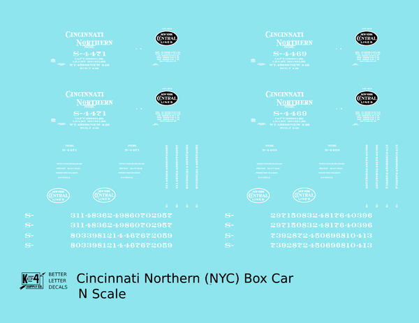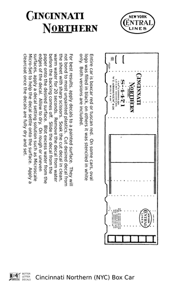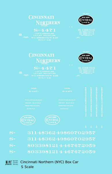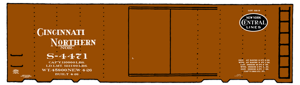 Cincinnati Northern 40 Ft Boxcar White New York Central - Decal - Choose Scale