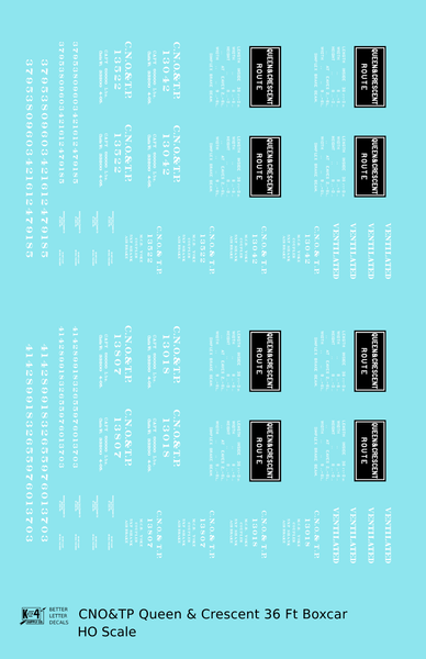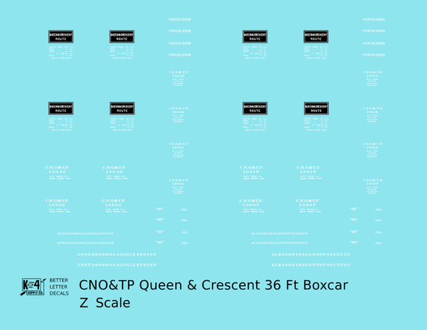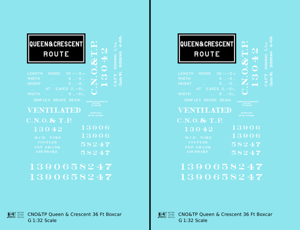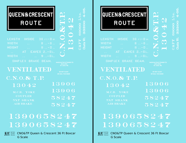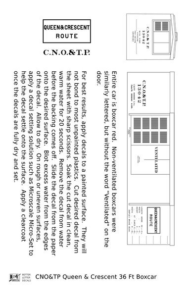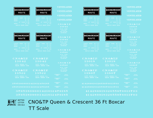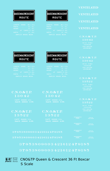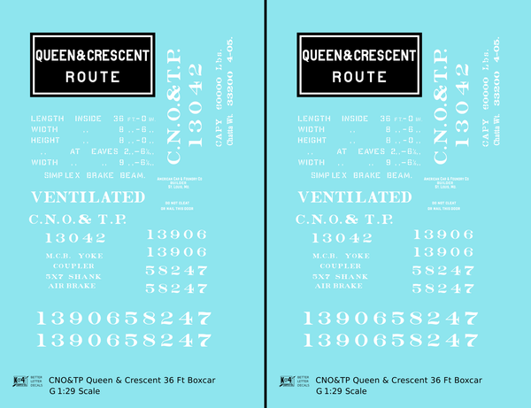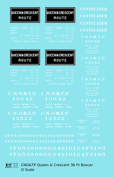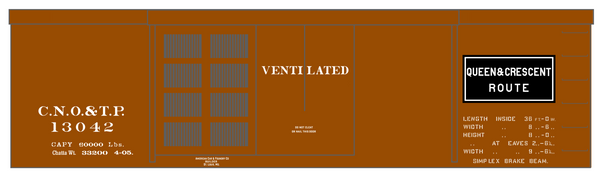> CNO&TP Queen & Crescent Route 36 Ft Boxcar White - Decal - Choose Scale