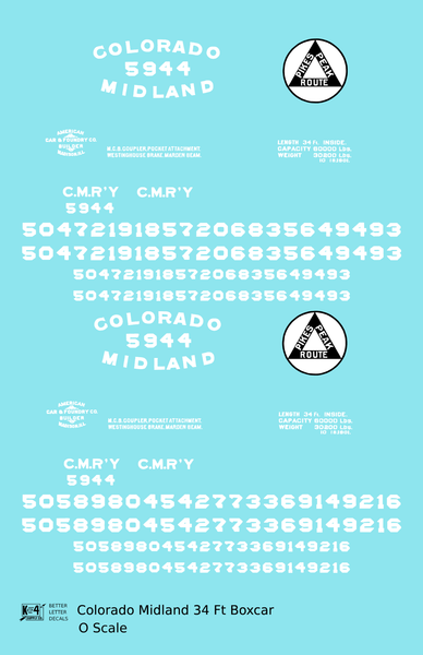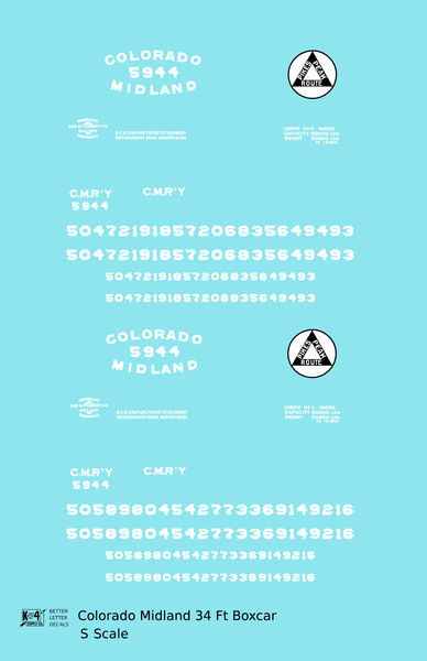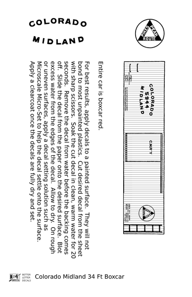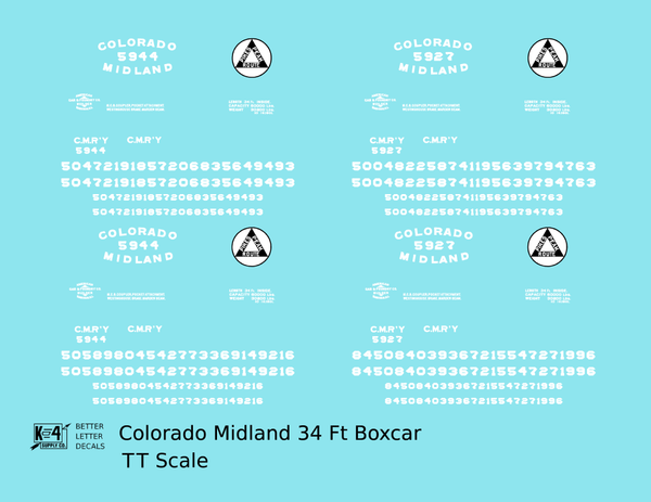 > Colorado Midland 34 Ft Boxcar White - Decal - Choose Scale