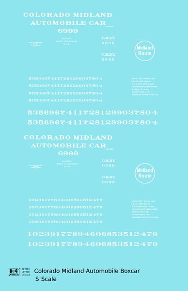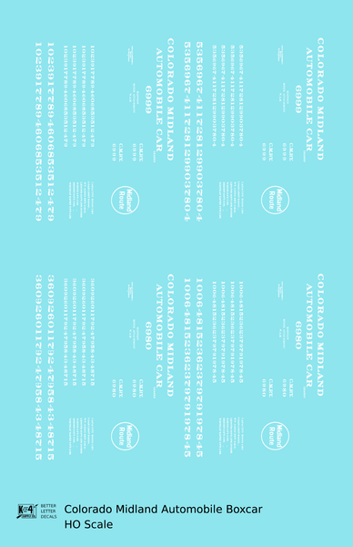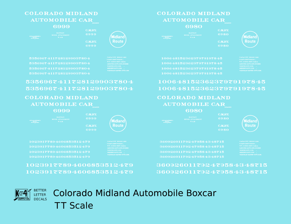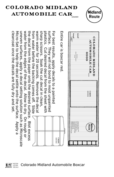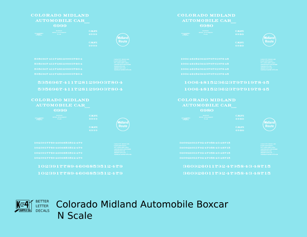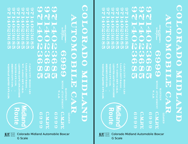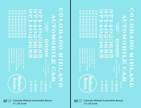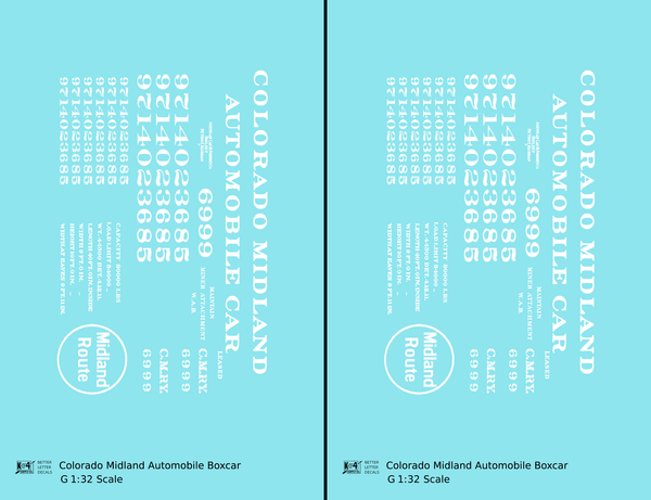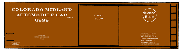 > Colorado Midland 40 Ft Auto Boxcar White - Decal - Choose Scale