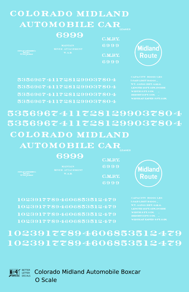 Colorado Midland 40 Ft Auto Boxcar White - Decal - Choose Scale