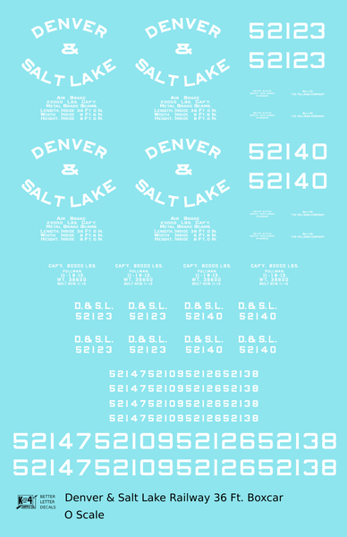 > Denver and Salt Lake 36 Ft Boxcar White - Decal - Choose Scale