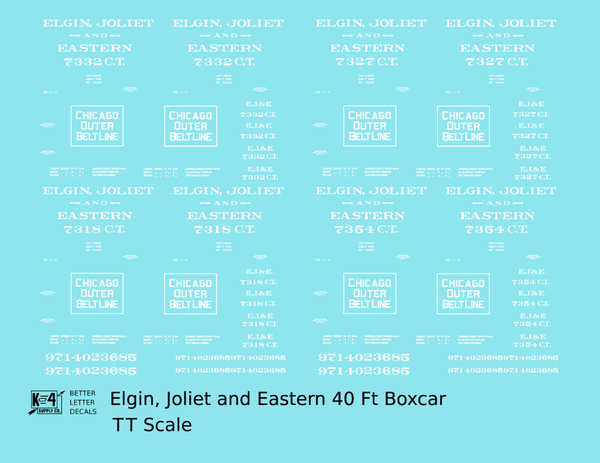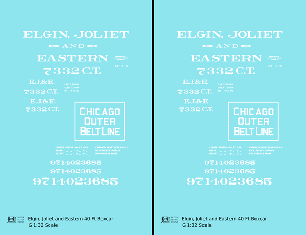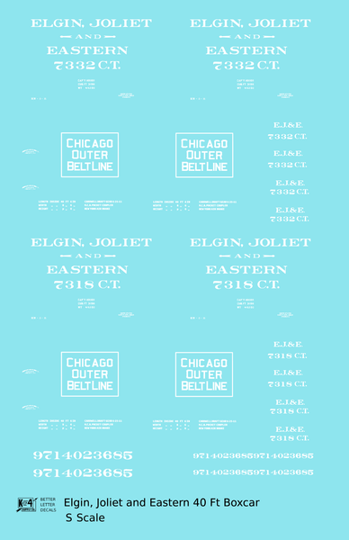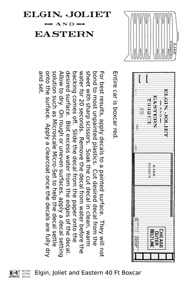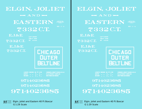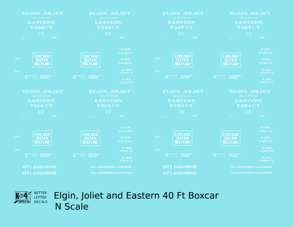 > Elgin Joliet and Eastern EJ&E 40 Ft Wood Boxcar White - Decal - Choose Scale
