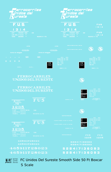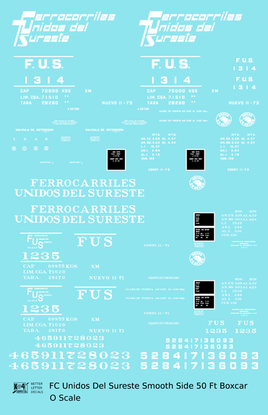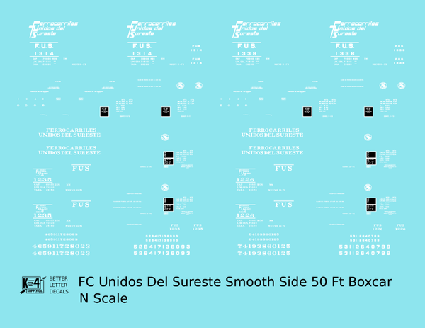 FC Unidos Del Sureste 50 Ft Boxcar White - Decal - Choose Scale
