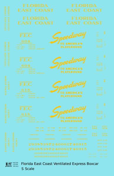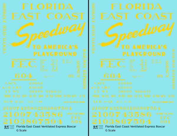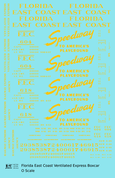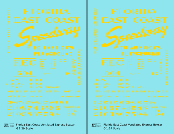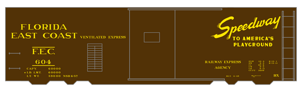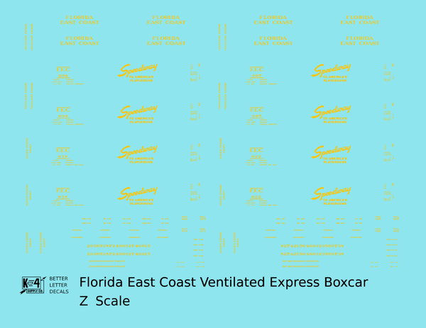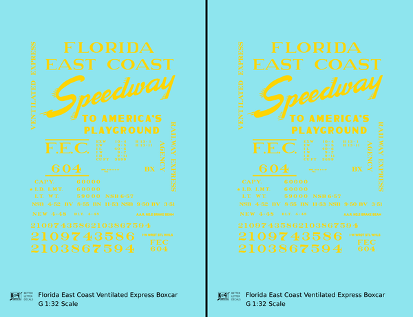 > Florida East Coast 40 Ft Express Boxcar Yellow - Decal - Choose Scale