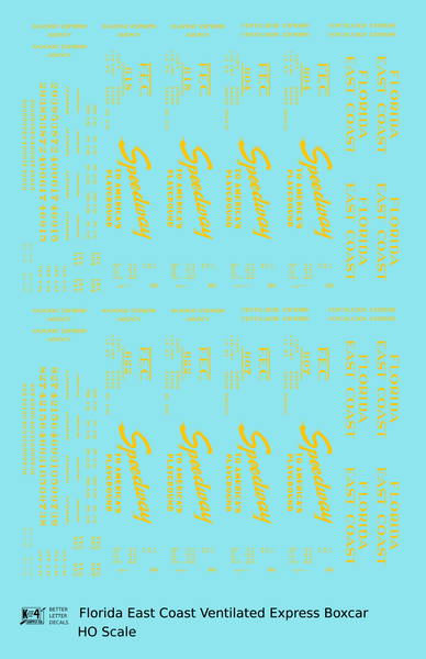 Florida East Coast 40 Ft Express Boxcar Yellow - Decal - Choose Scale