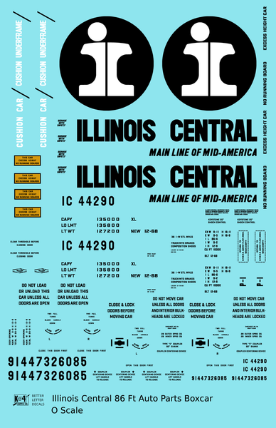 > Illinois Central 86 Ft Auto Parts Boxcar Black - Decal - Choose Scale