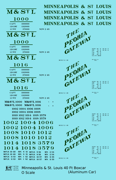 > Minneapolis and St Louis Aluminum 40 Ft Boxcar Dark Green and Black - Decal - Choose Scale