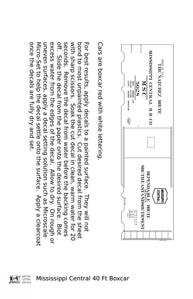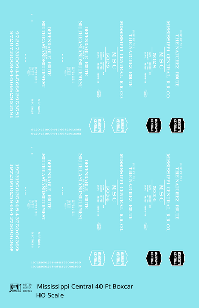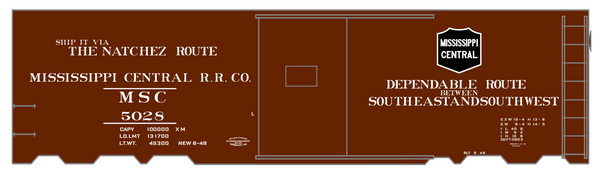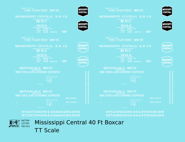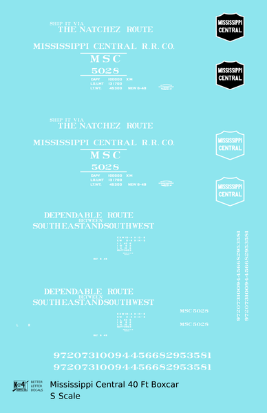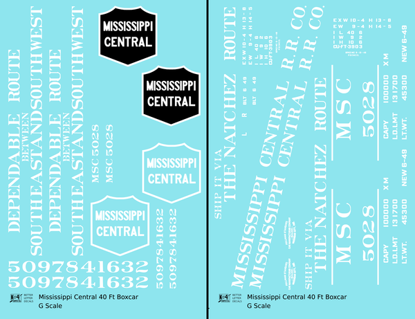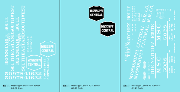 > Mississippi Central 40 Ft Boxcar White - Decal - Choose Scale