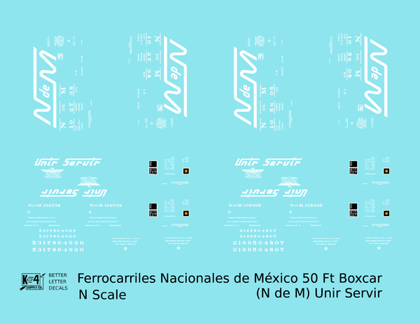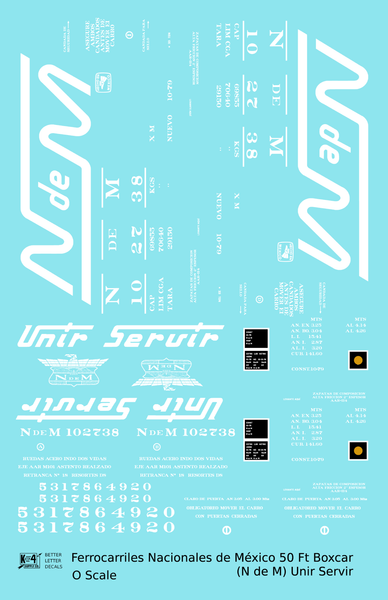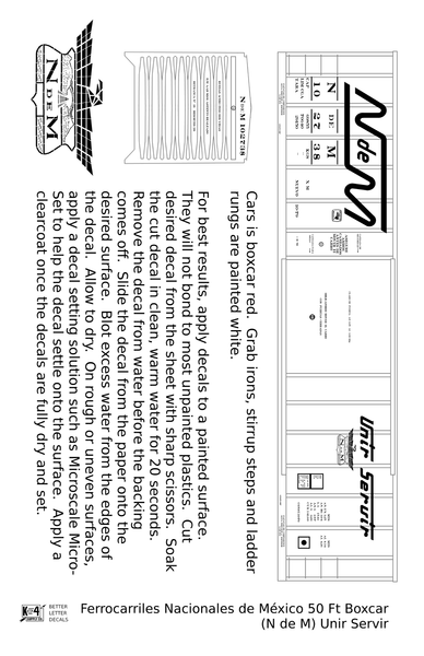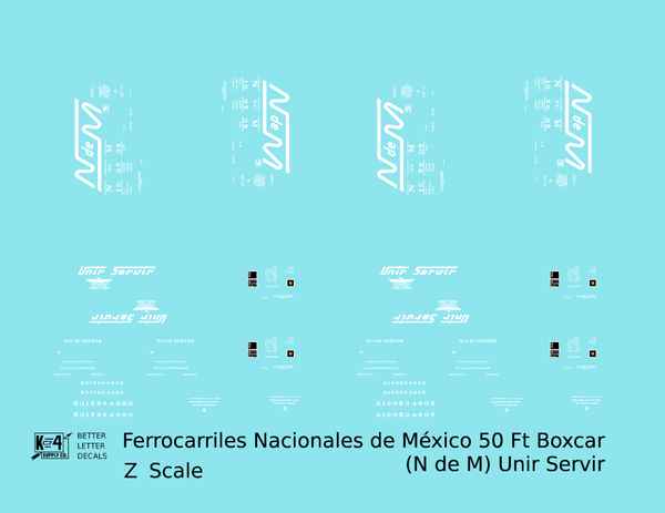 > Nacionales De Mexico 50 Ft Boxcar White N De M Unir Servir - Decal - Choose Scale