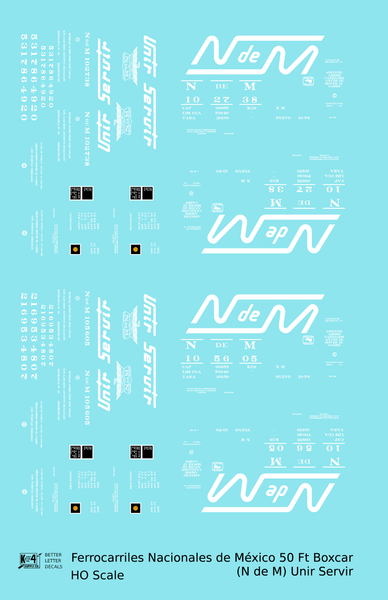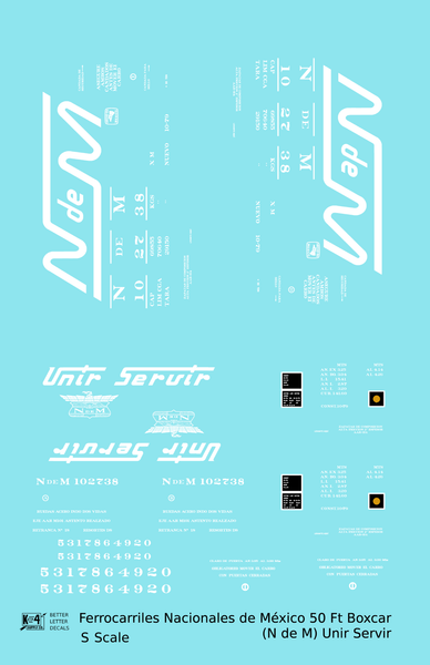 Nacionales De Mexico 50 Ft Boxcar White N De M Unir Servir - Decal - Choose Scale