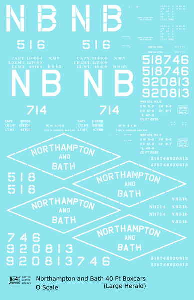 Northampton and Bath 40 Ft Steel Boxcar White Big Herald - Decal - Choose Scale