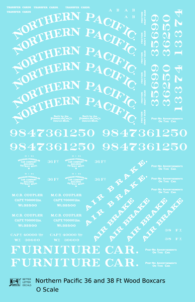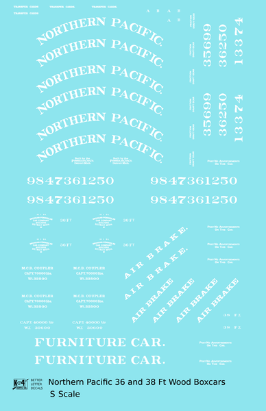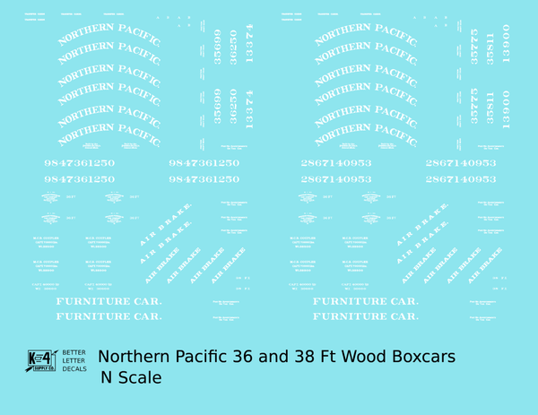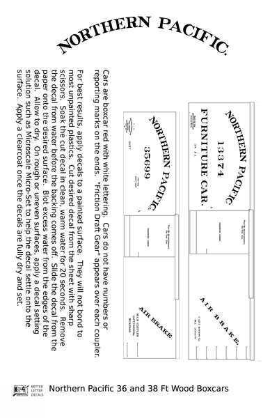 > Northern Pacific 36 Ft Wood Boxcar White - Decal - Choose Scale