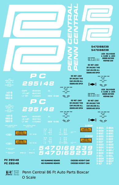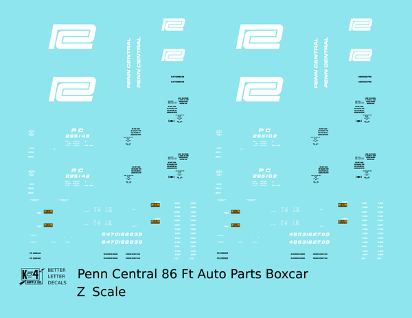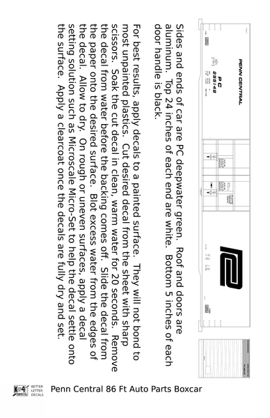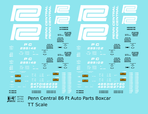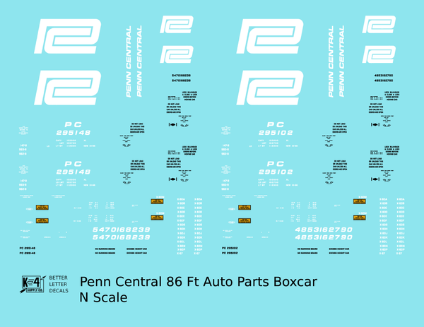 > Penn Central 86 Ft Auto Parts Boxcar White - Decal - Choose Scale