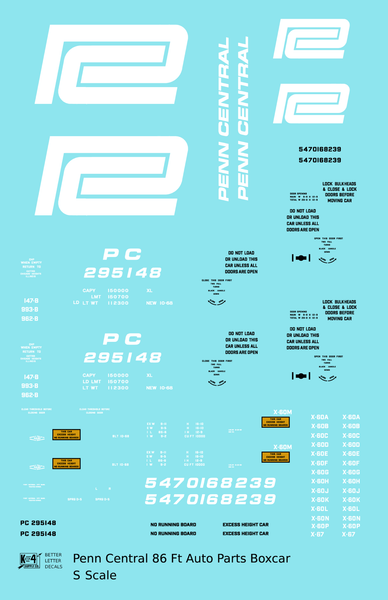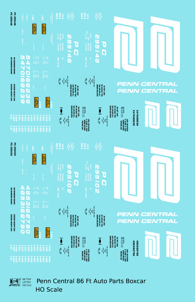 Penn Central 86 Ft Auto Parts Boxcar White - Decal - Choose Scale