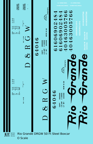 > Rio Grande 50 Ft Steel Boxcar Black - Decal - Choose Scale