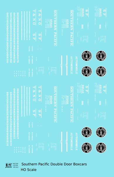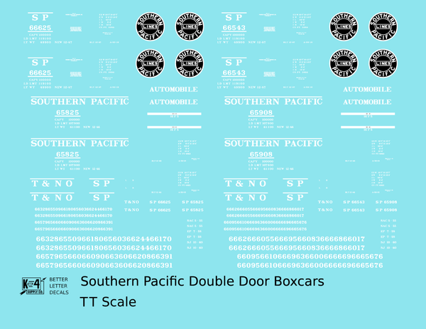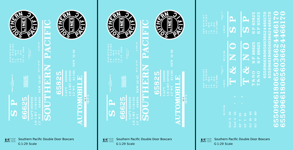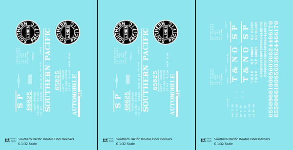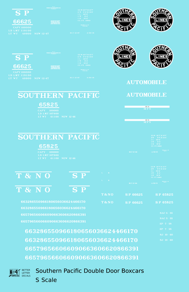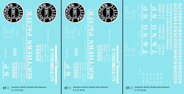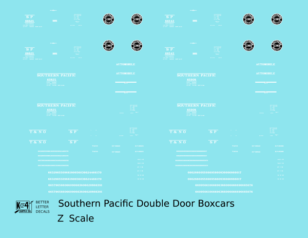 > Southern Pacific Double Door Boxcar White and Black - Decal - Choose Scale