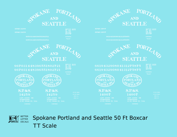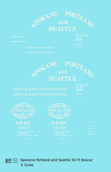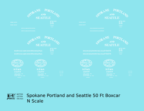 > Spokane Portland & Seattle 50 Ft Boxcar White Arched Lettering - Decal - Choose Scale