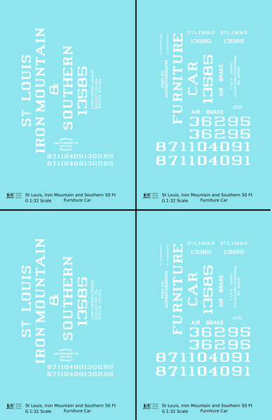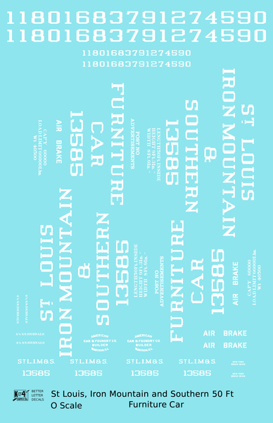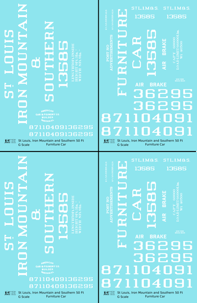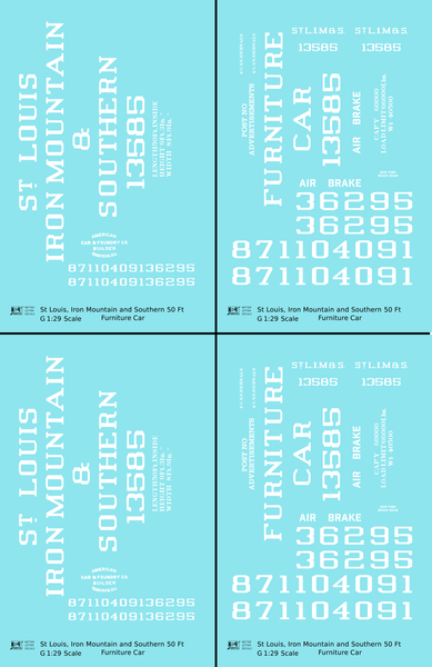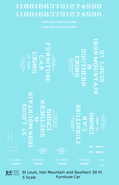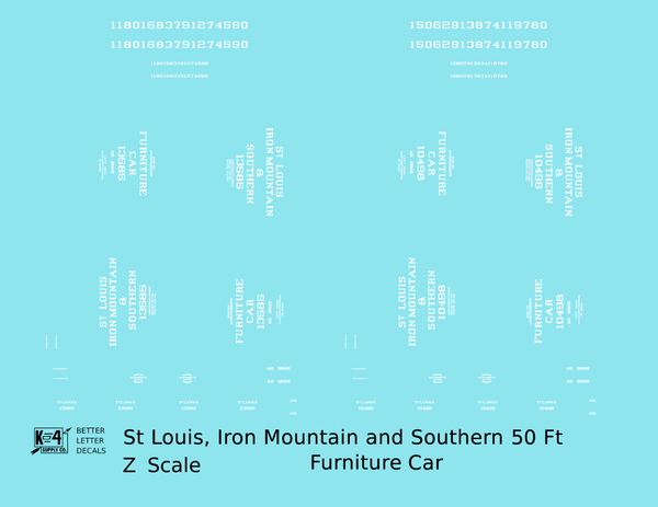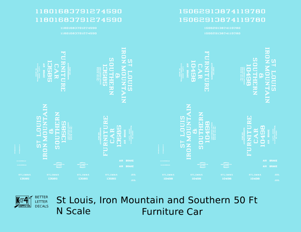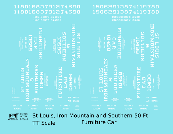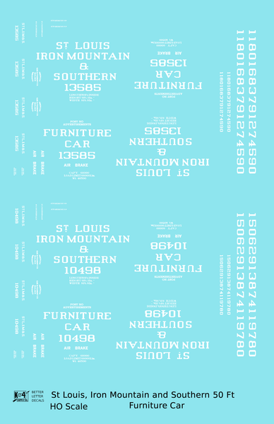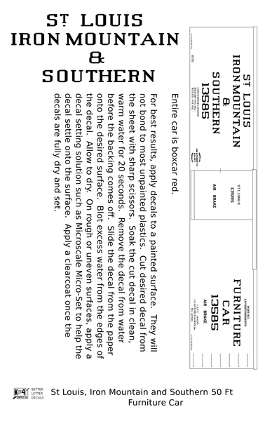 > St Louis, Iron Mountain & Southern 50 Ft Furniture Boxcar StLIM&S - Decal - Choose Scale