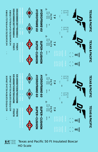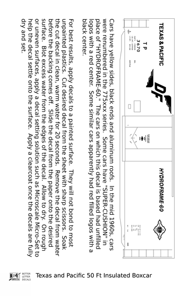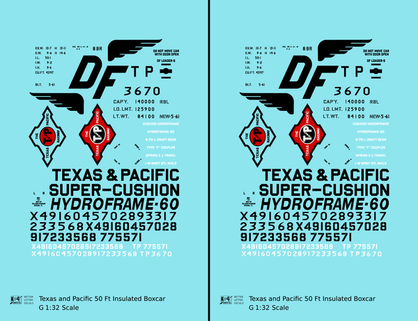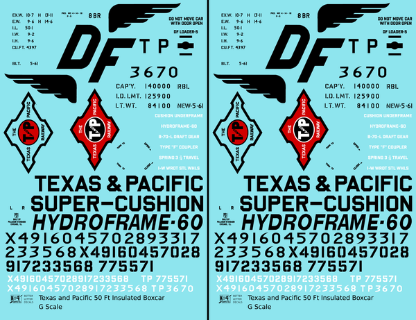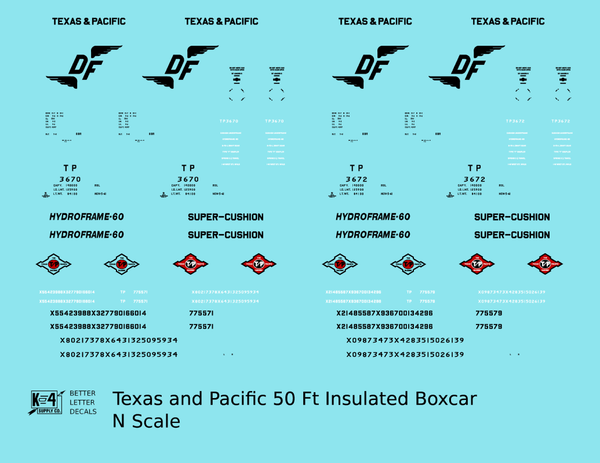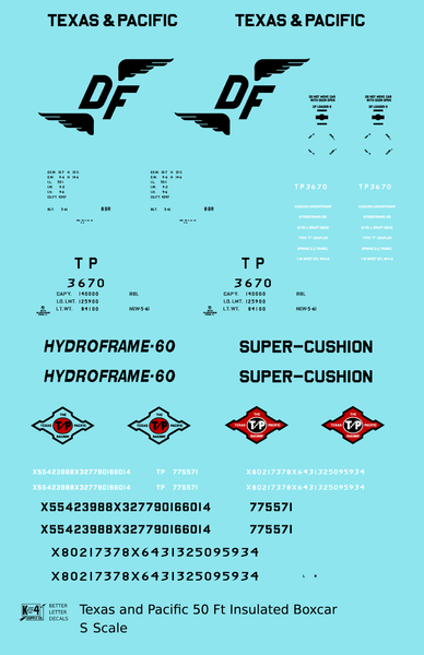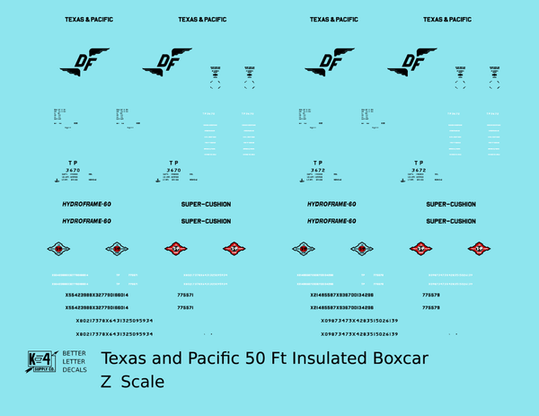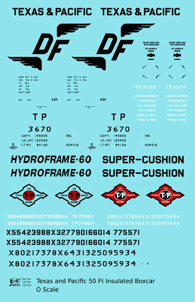Texas and Pacific 50 Ft Insulated Boxcar Black and Red - Decal - Choose Scale