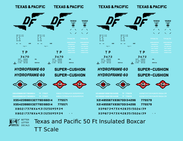 > Texas and Pacific 50 Ft Insulated Boxcar Black and Red - Decal - Choose Scale