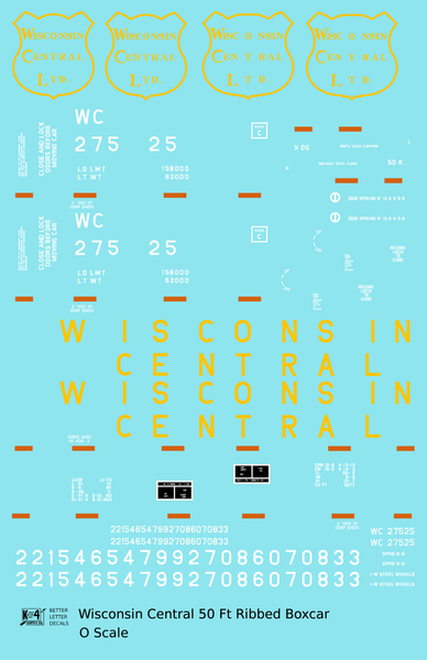 Wisconsin Central 50 Ft Ribbed Boxcar Yellow - Decal - Choose Scale