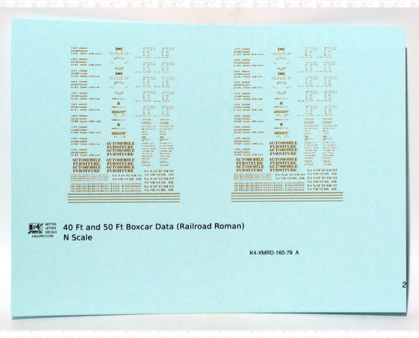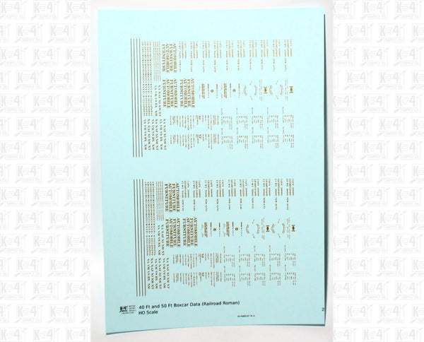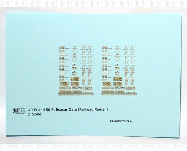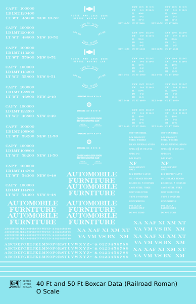 > 40 To 50 Ft Boxcar Roman Font Dimensional Data Set - Decal - Choose Scale and Color