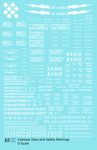 Caboose Data and Markings - Decal - Choose Scale and Color