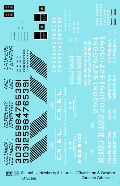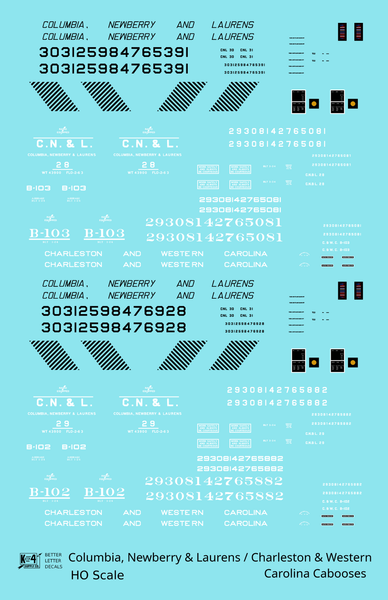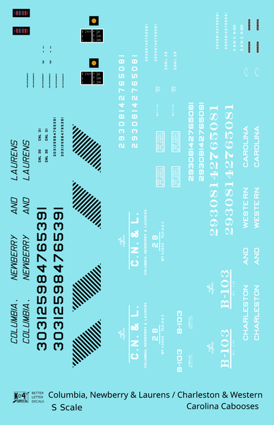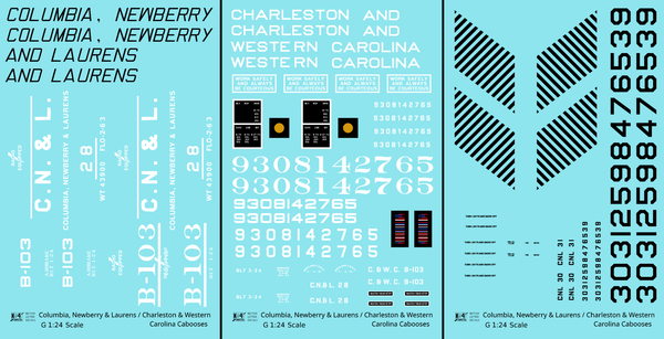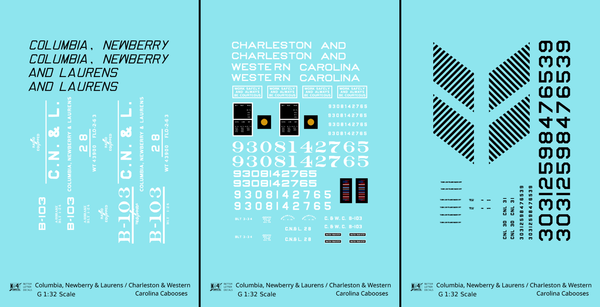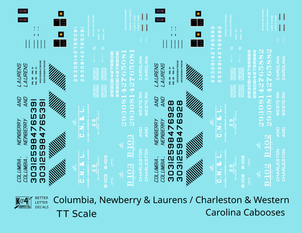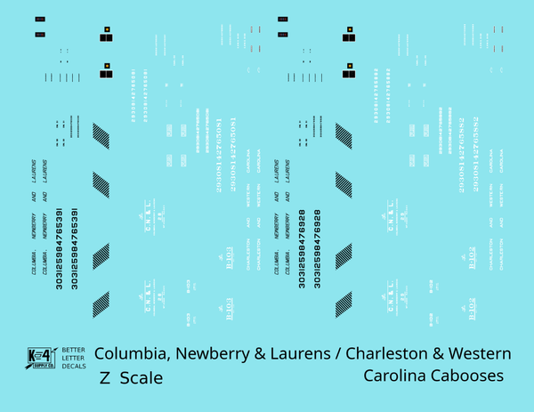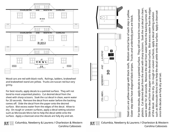 > Columbia Newberry & Laurens / Charleston & Western Carolina Caboose Black and White ACL - Decal - Choose Scale