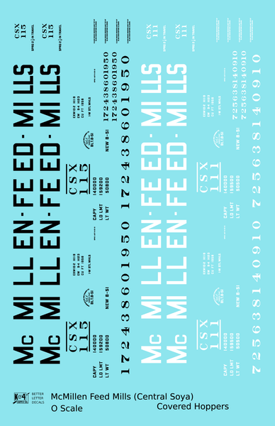 McMillen Feed Mills (Central Soya) Covered Hopper Black and White - Decal - Choose Scale