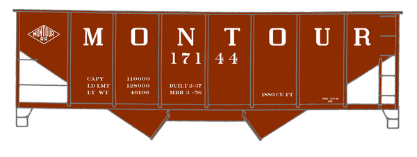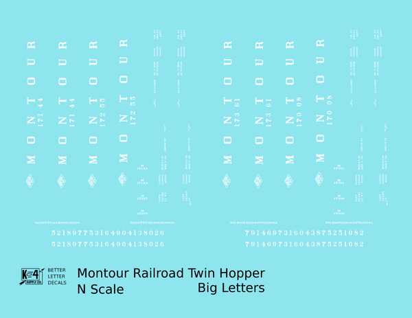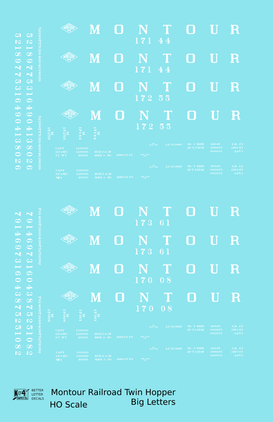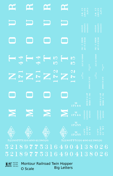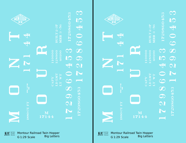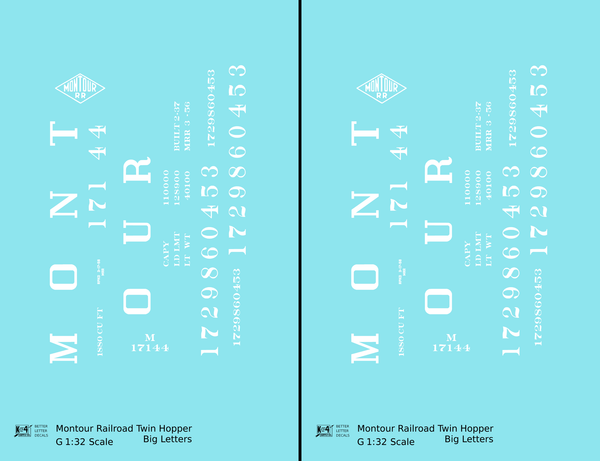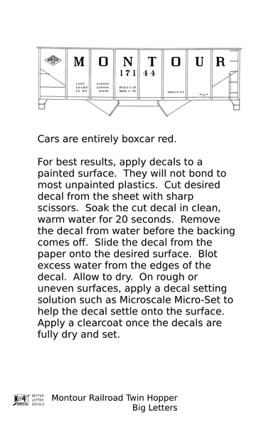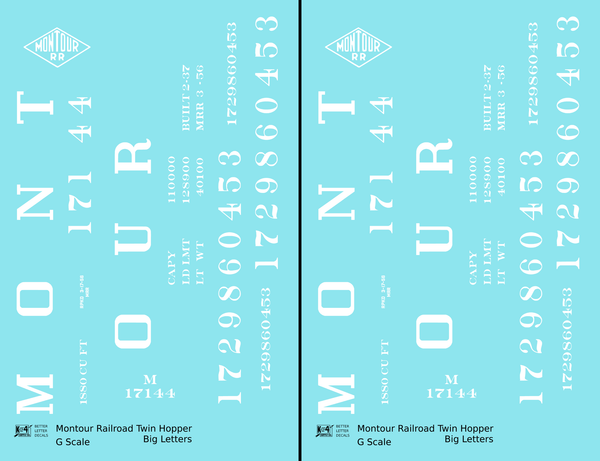 > Montour Railroad Ribbed Twin Hopper White Big Lettering - Decal - Choose Scale