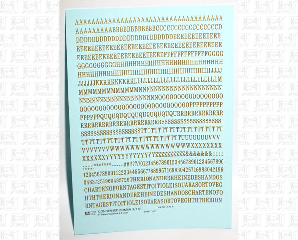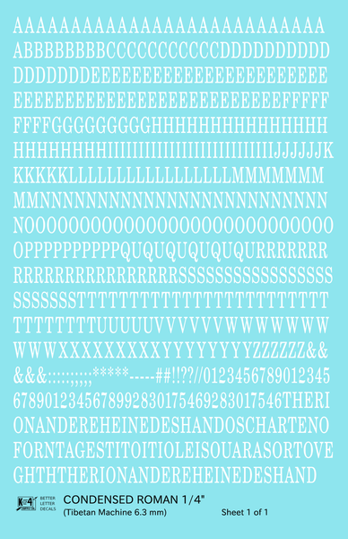 Condensed Roman font.