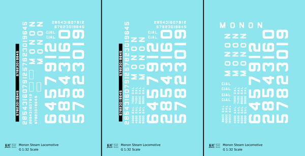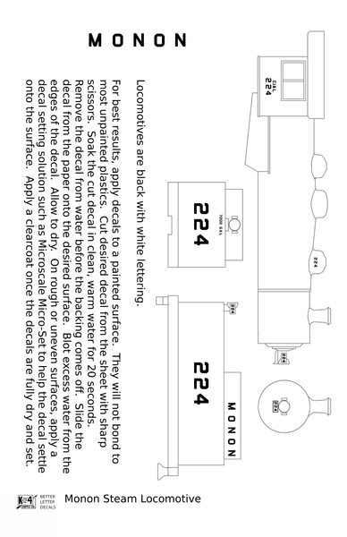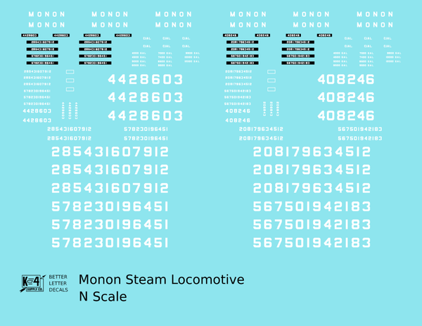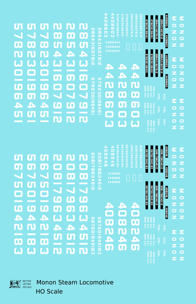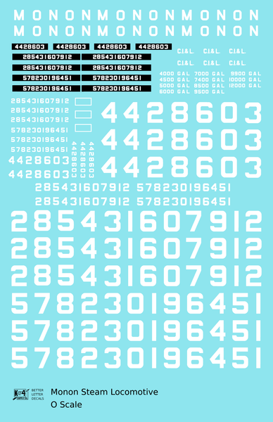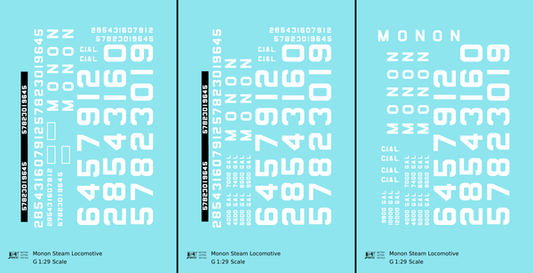 > Monon (CIL) Steam Locomotive White - Decal - Choose Scale