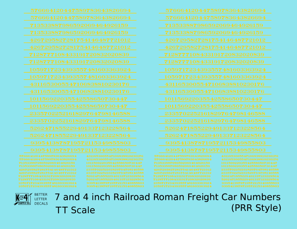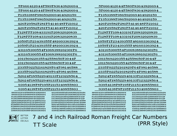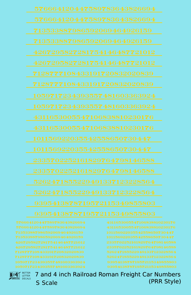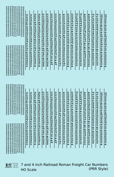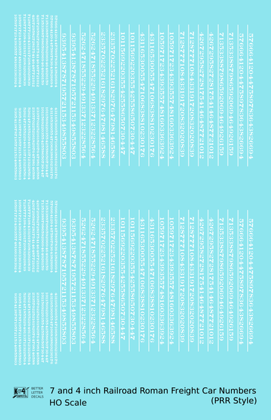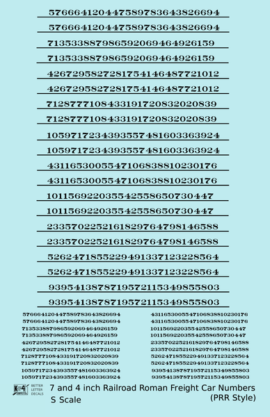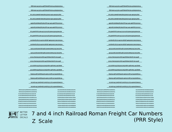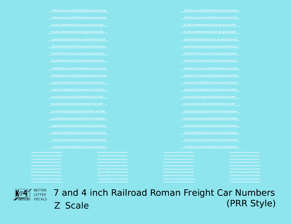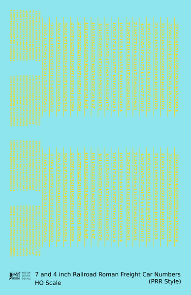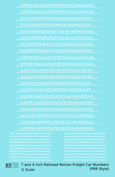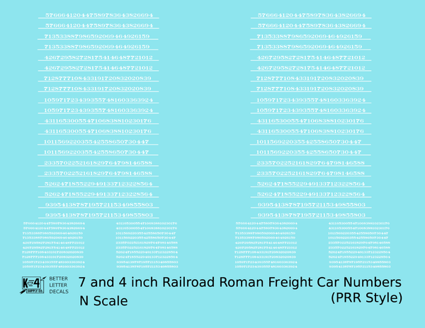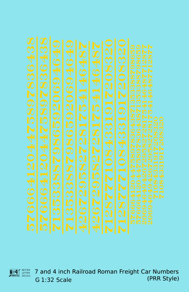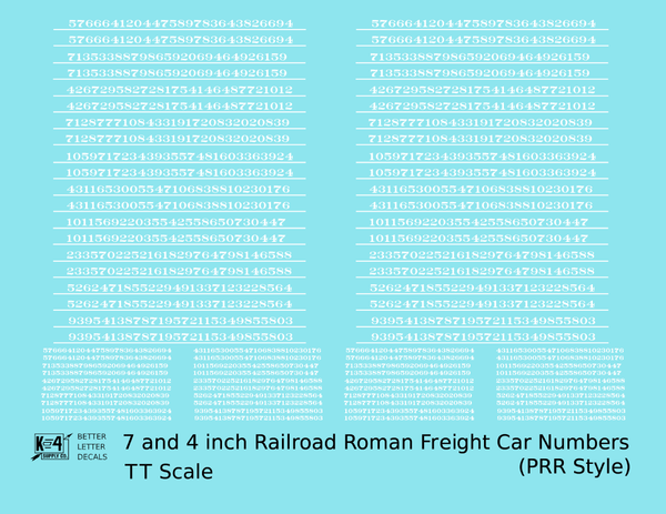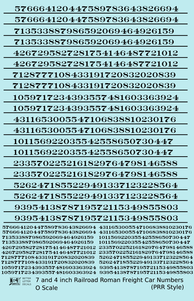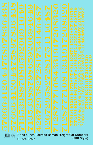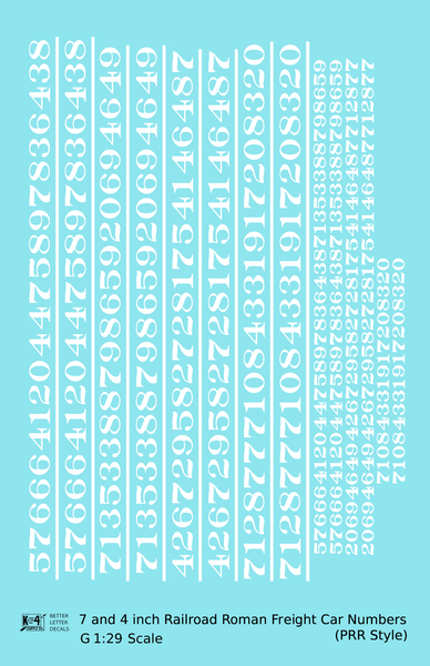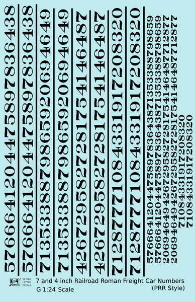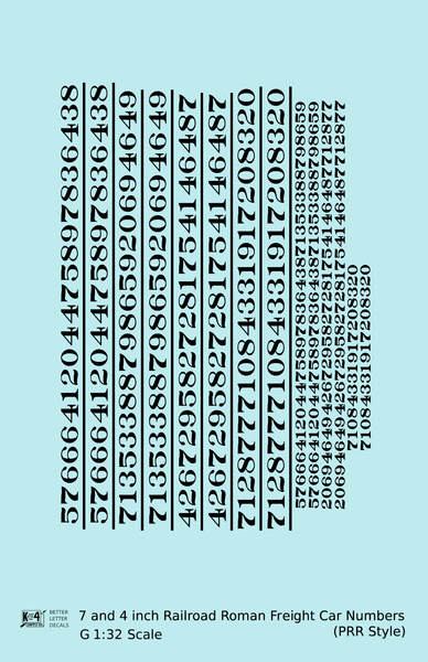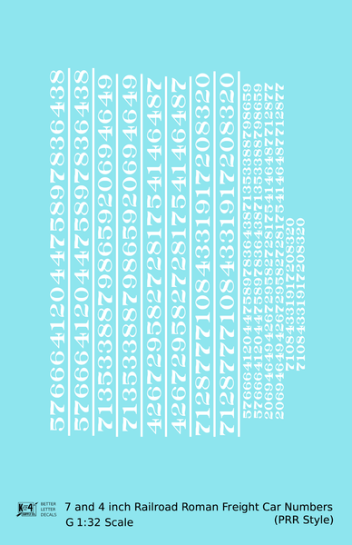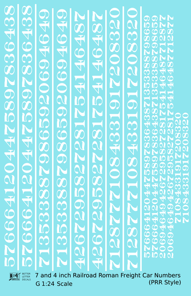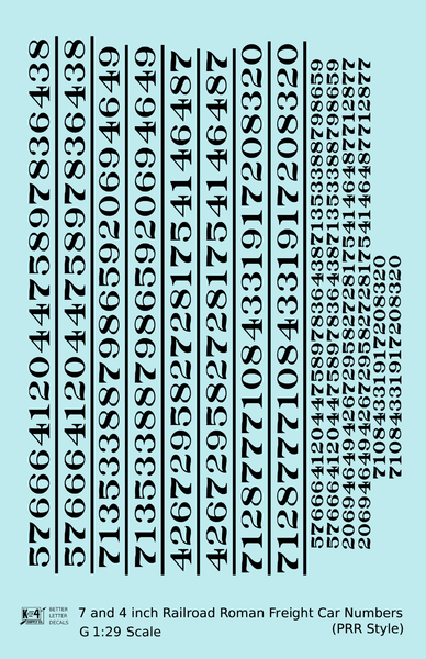 PRR Pennsylvania Style 7 Scale Inch Railroad Roman Freight Car Numbers - Decal - Choose Scale and Color