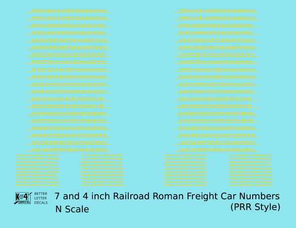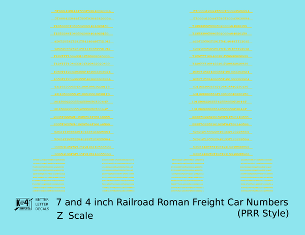 > PRR Pennsylvania Style 7 Scale Inch Railroad Roman Freight Car Numbers - Decal - Choose Scale and Color