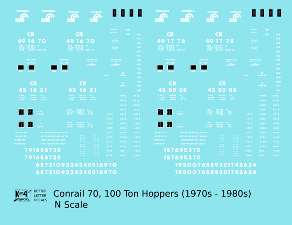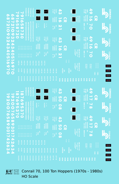Conrail Open Hopper White - Decal - Choose Scale