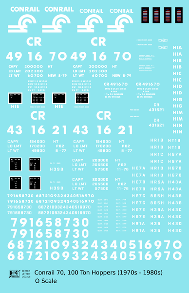 > Conrail Open Hopper White - Decal - Choose Scale