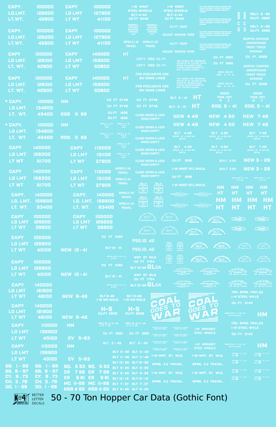 > Dimensional and Weight Data 50 To 70 Ton Hopper Car Gothic Font - Decal - Choose Scale and Color