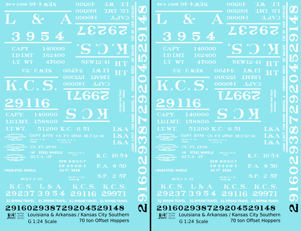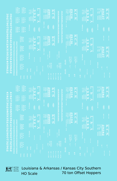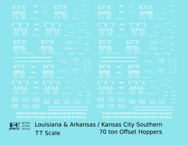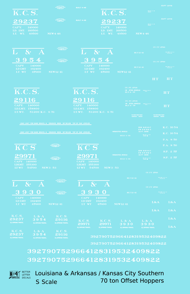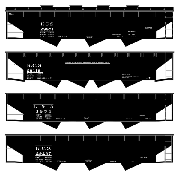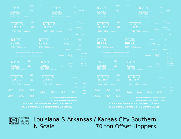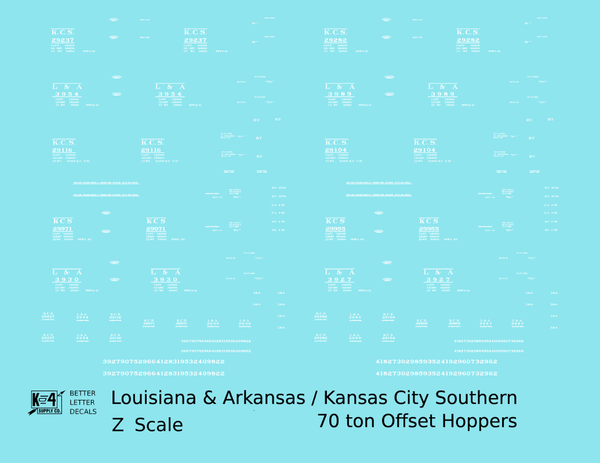 > Kansas City Southern 70 Ton Offset Hopper White KCS L&A - Decal - Choose Scale