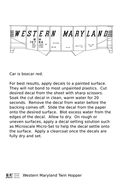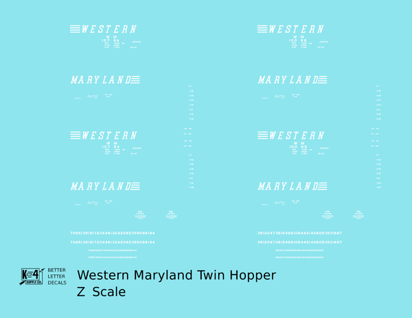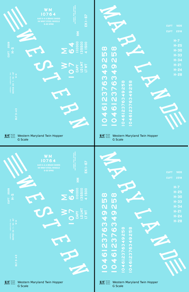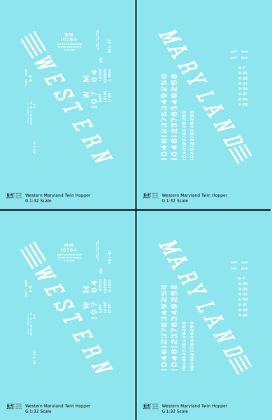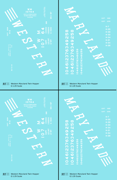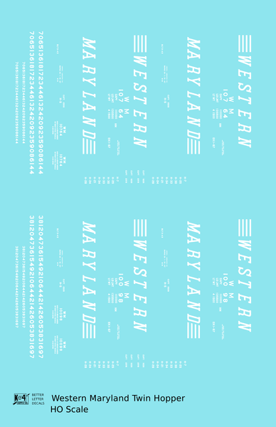 Western Maryland Twin Hopper Car White Speed Letter - Decal - Choose Scale