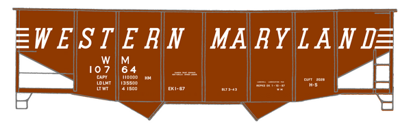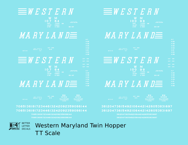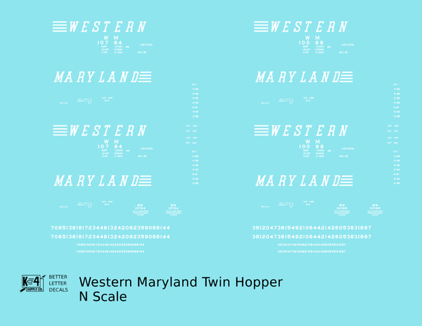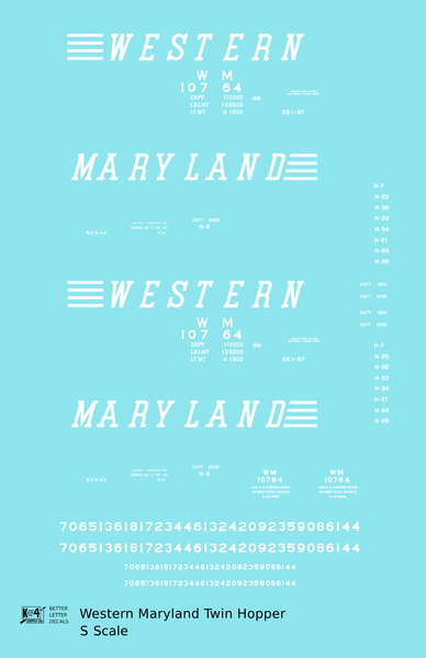 > Western Maryland Twin Hopper Car White Speed Letter - Decal - Choose Scale