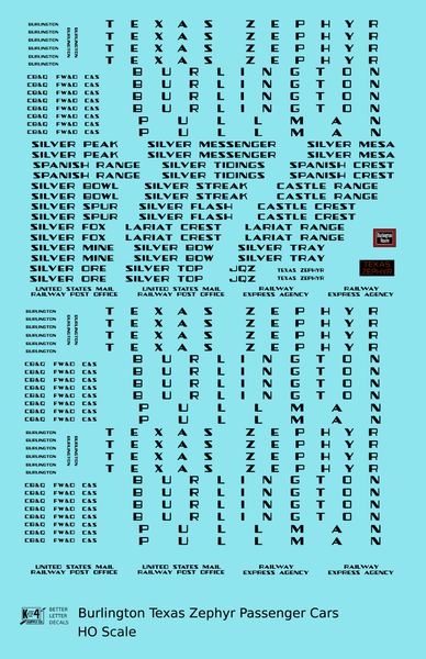 > Burlington Texas Zephyr Streamlined Passenger Car Black - Decal - Choose Scale