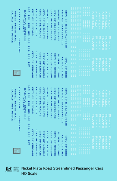 Nickel Plate Road Streamlined Passenger Car Blue and White - Decal - Choose Scale