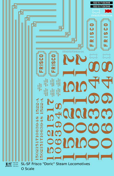 SLSF Frisco Doric Passenger Steam Locomotive Gold - Decal - Choose Scale
