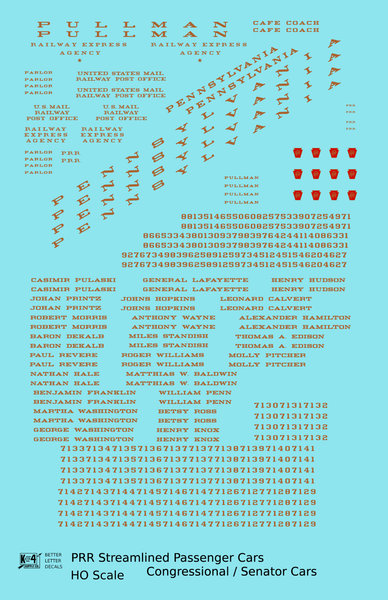 Pennsylvania Railroad Senator Congressional Passenger Car Bronze Gold and Red - Decal - Choose Scale