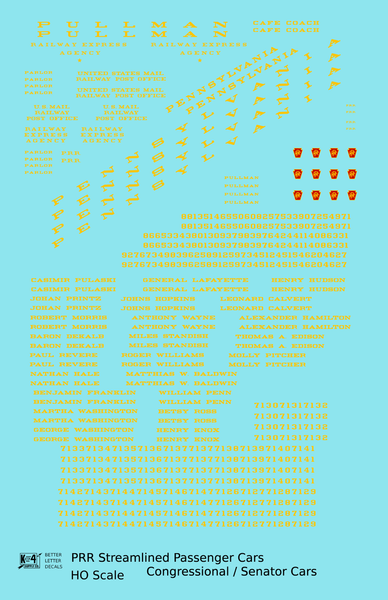 Pennsylvania Railroad Senator Congressional Passenger Car Dulux Gold and Red - Decal - Choose Scale